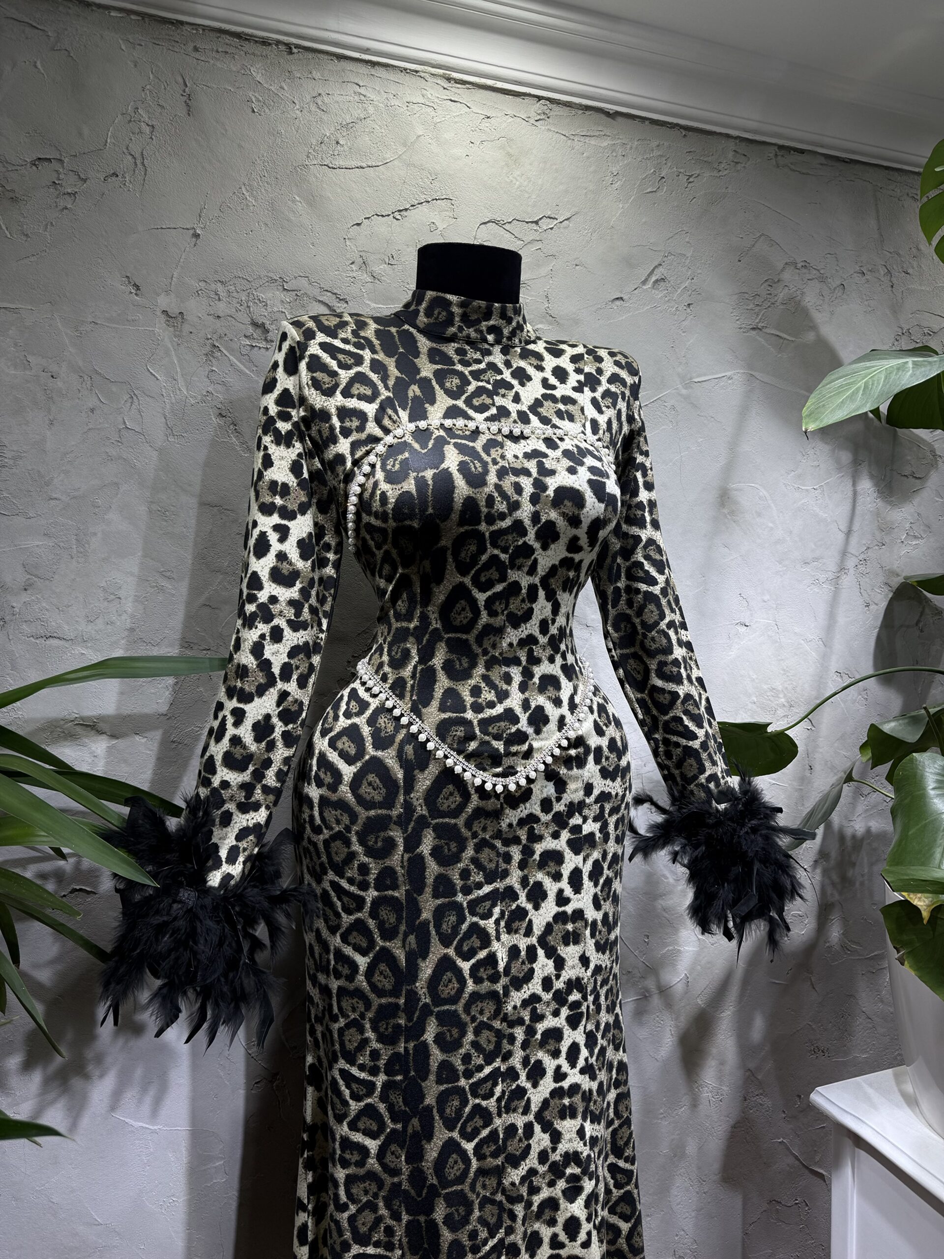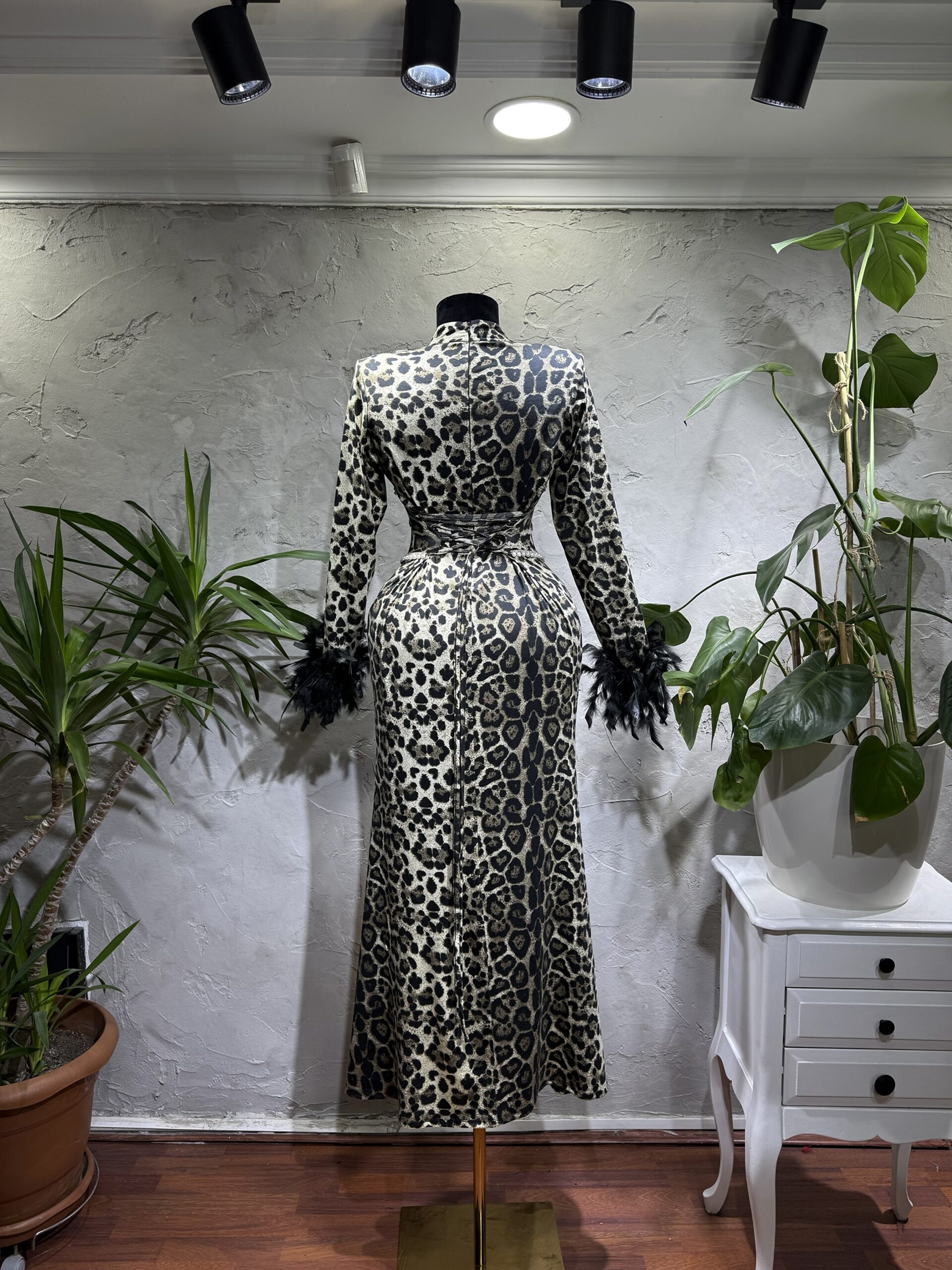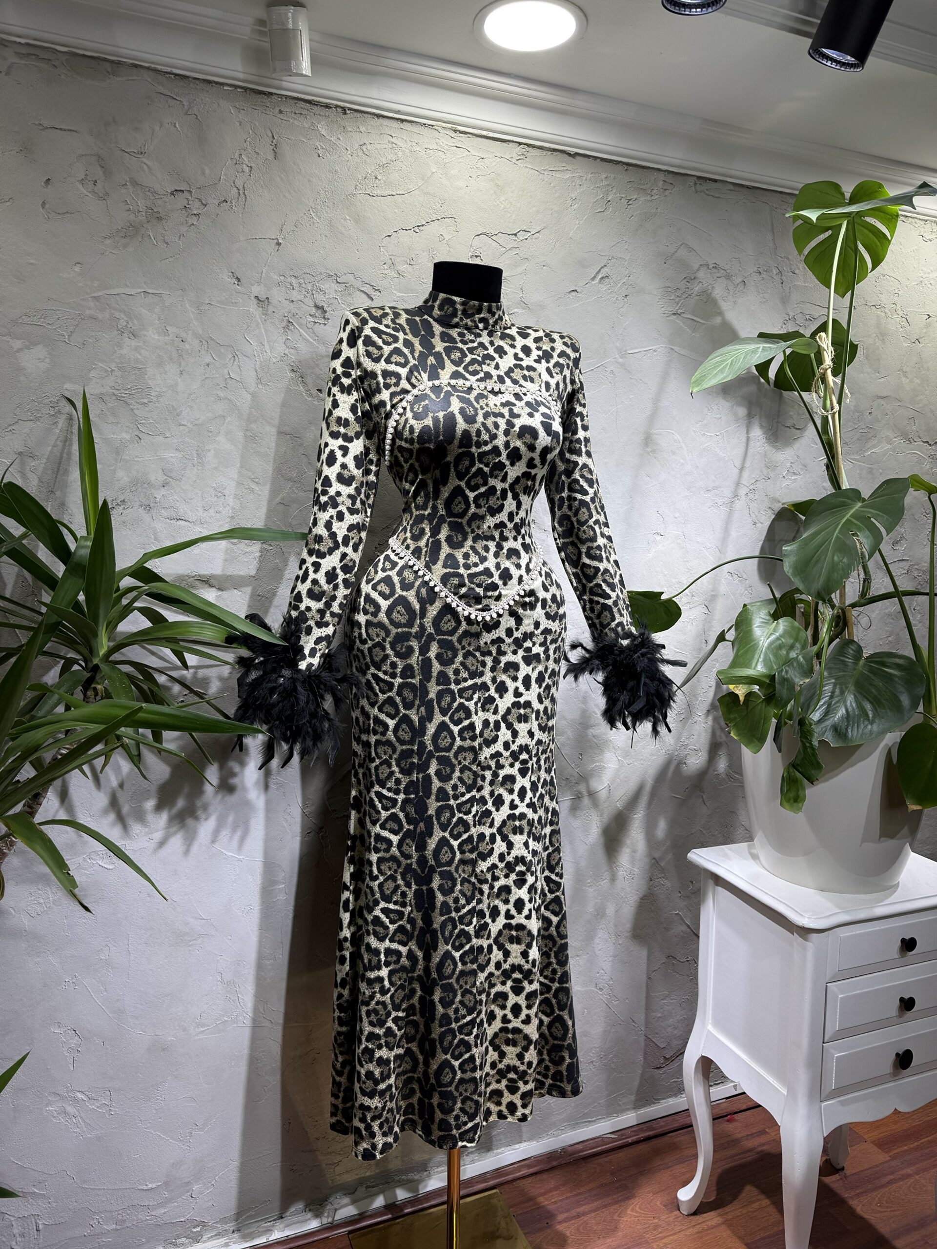 Pamuk Viskon Kumaştan Leopar Desenli Tasarım Elbise