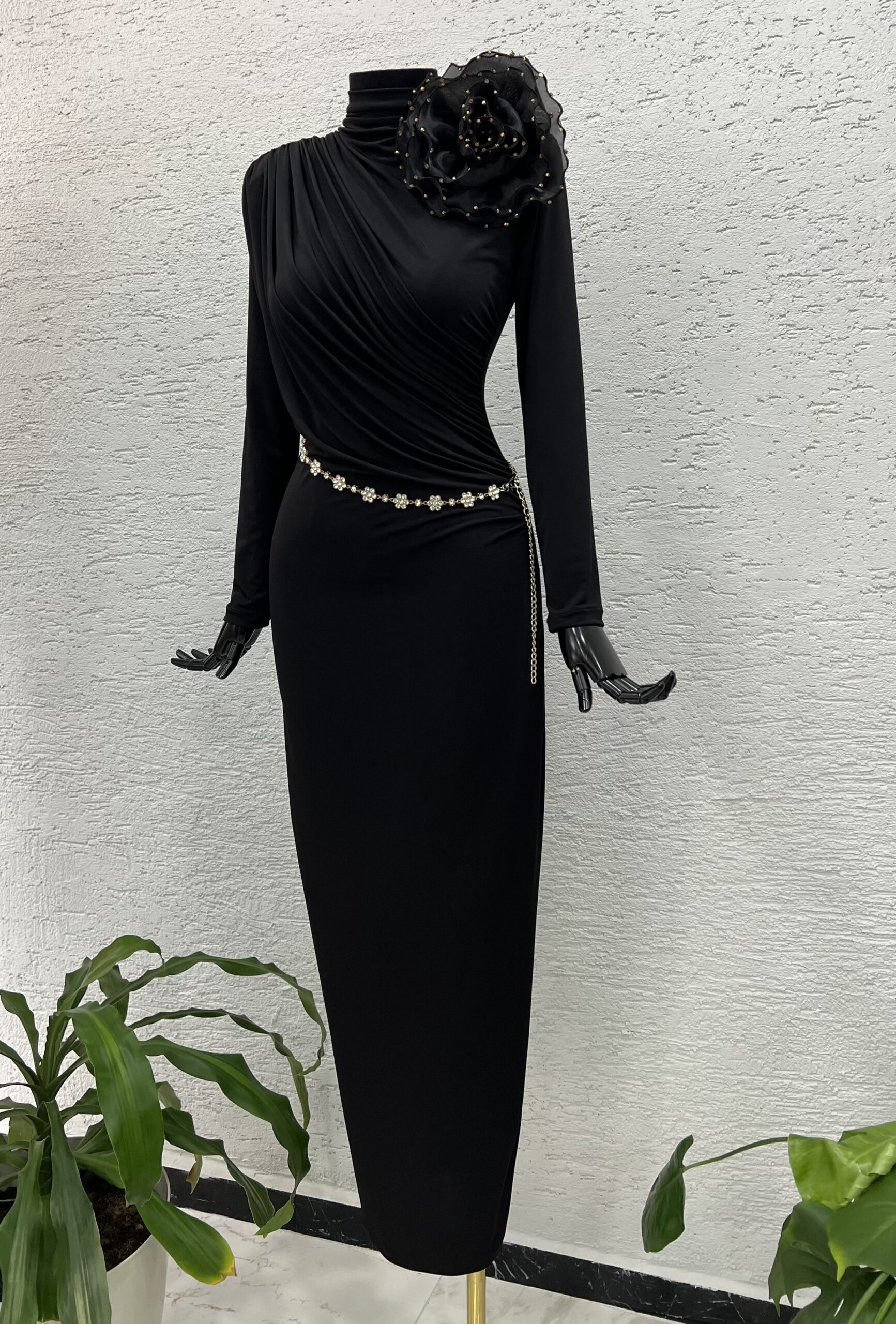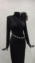 Camelia Siyah Drapeli Elbise