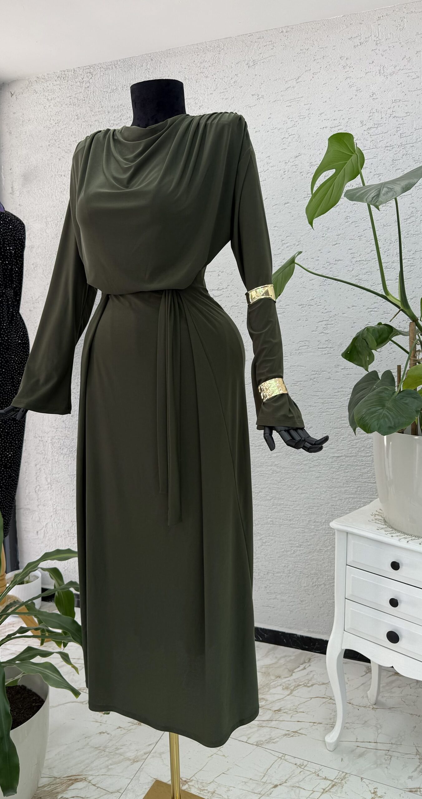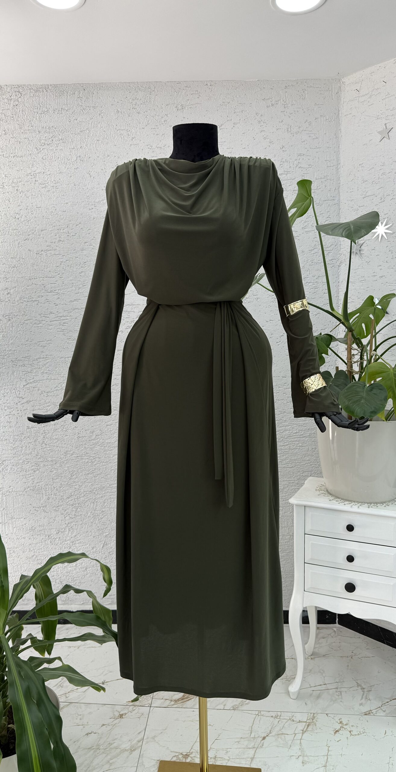 Kendinden Kuşaklı Sandy Elbise;
