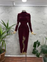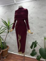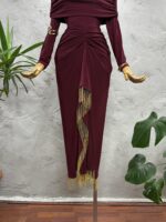 Janset Bordo Büzgülü Etek Takım