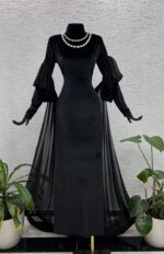 Pelerinli Kadife Elbise;