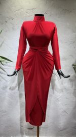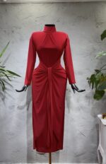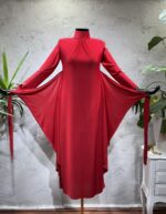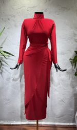 Kelebek Model Tasarım Kırmızı Renkli Elbise