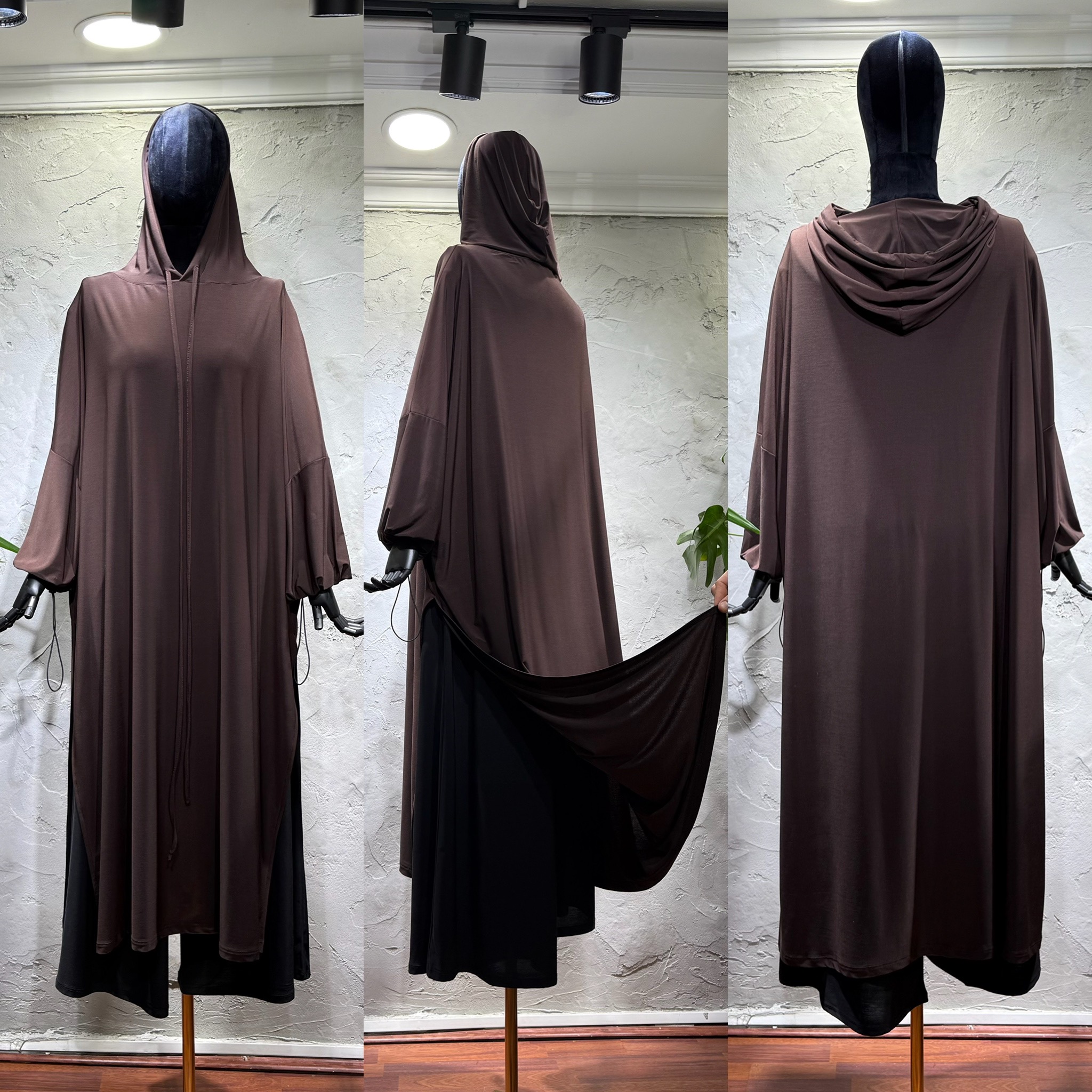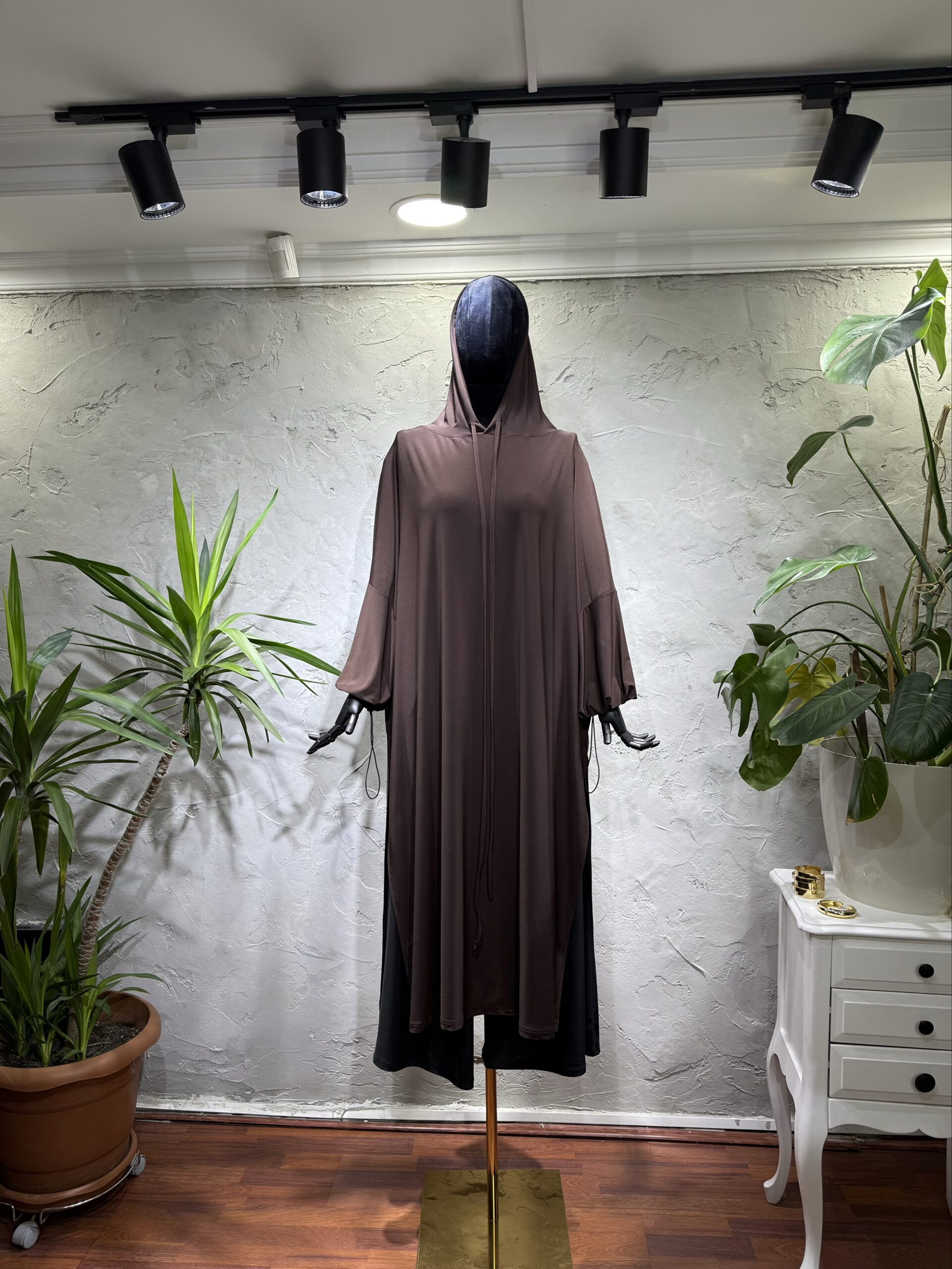 Sandy Kumaştan Kapşonlu Tunik Elbise