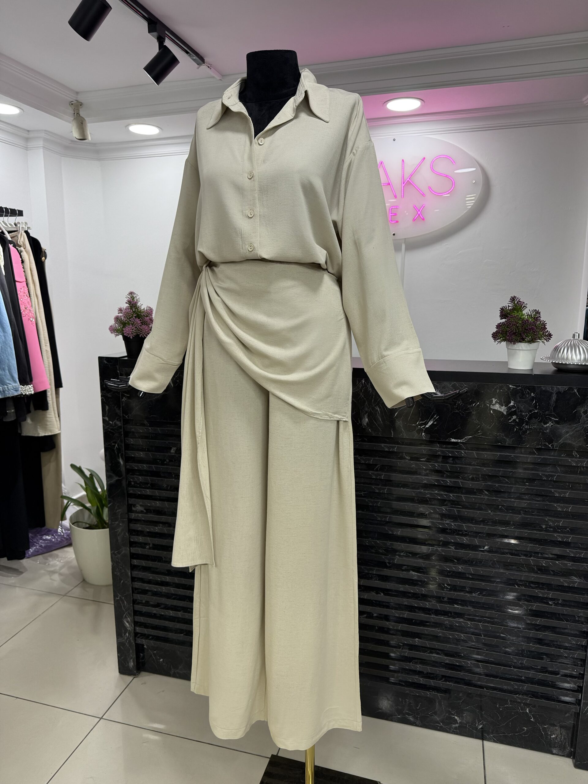 •Gömlek ve tasarım Pantolondan oluşmaktadır.