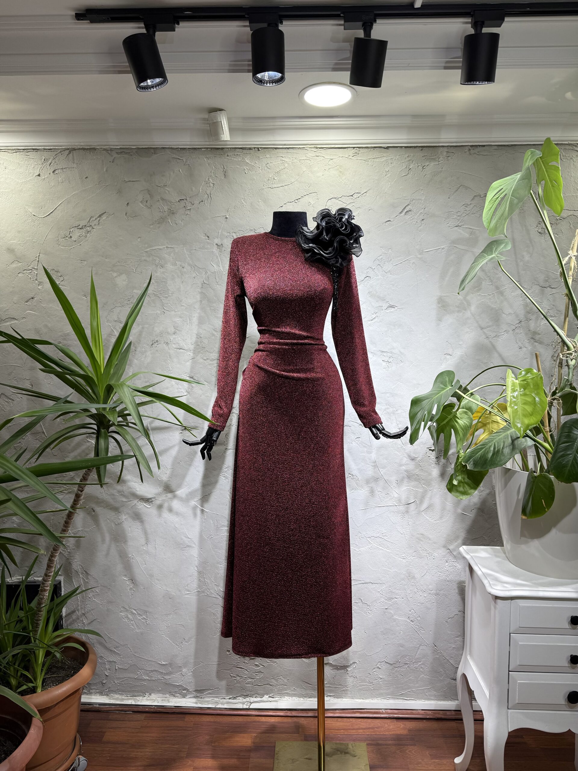 Simli Buzzy Kumaştan Harika Bir Elbise ile Sizlerleyiz